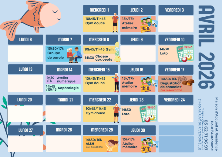 La MARPA (Maison d’Accueil et Résidence pour l’Autonomie) d’Auriac-sur-Vendinelle vous propose un programme d’animations tout au long de l'année !